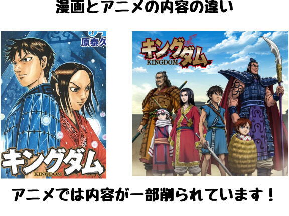 | 要素 | キングダム 漫画 | キングダム アニメ |
