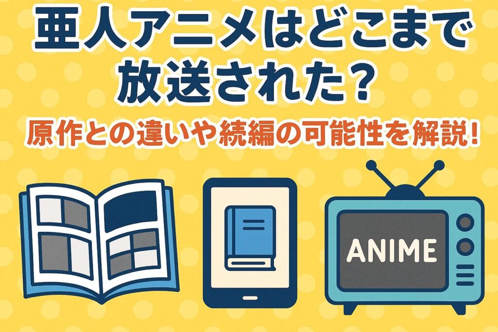 私たちの「亜人アニメ何話まで」のストーリーを楽しむためには、について知っておくことが重要です。この作品は、さまざまなプラットフォームで視聴可能であり、多くのファンに愛されています。以下では、主な放送情報や視聴方法について詳しく紹介します。