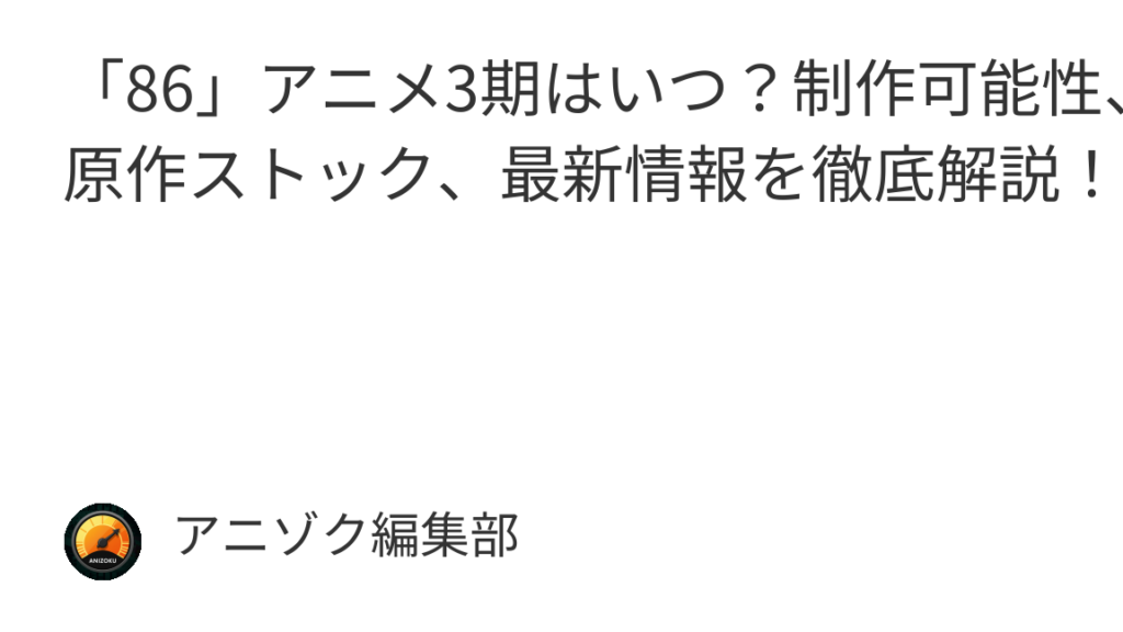 本記事では『86 アニメ 漫画どこまで』というキーワードを中心に、最新情報やエピソード数そして今後の展開についてお届けします。この作品には多くの謎やサプライズが潜んでいますので我々と一緒にその全貌を探求していきましょう。果たして皆さんはこの物語がどうなっていくと思いますか?興味深い旅路が待っています。
