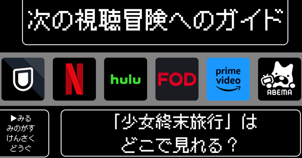 - Hulu: 特定の地域で「少女終末旅行」が視聴できるため、チェックしてみる価値があります。