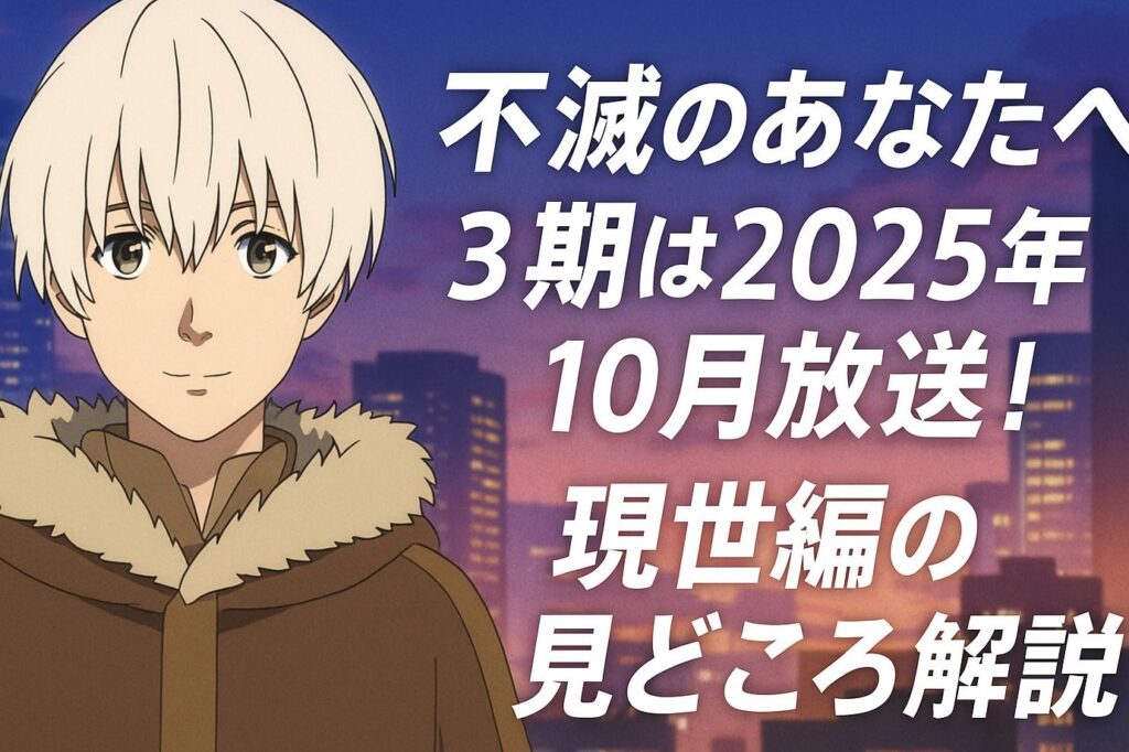 現在、私たちが注目している『不滅のあなたへ』アニメ第3期の放送に関する詳細情報は、ファンにとって非常に重要です。この作品は独特なストーリー展開やキャラクター設定で、多くの視聴者を魅了しています。では、具体的な放送予定について見ていきましょう。